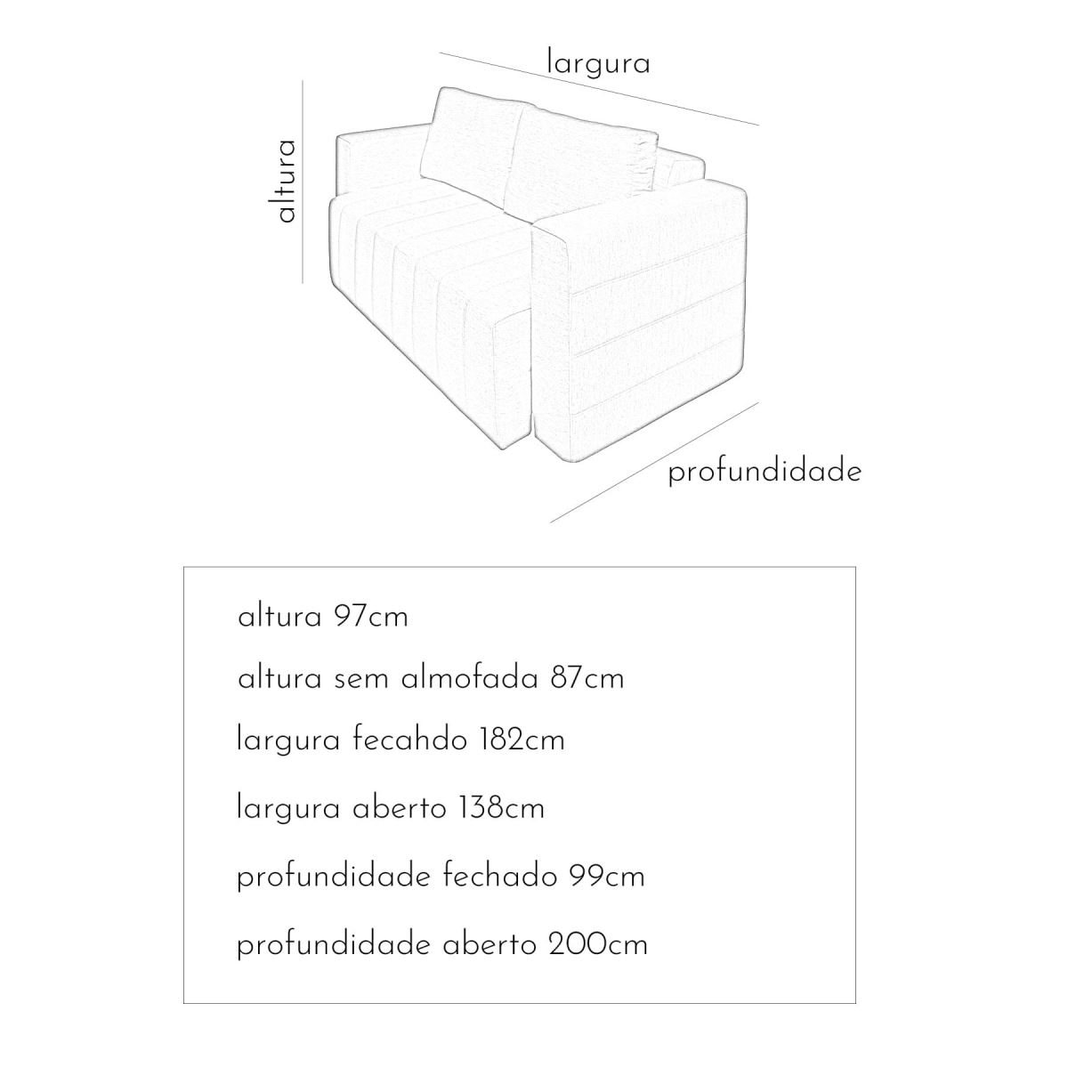 Estrutura em madeira maciça eucalipto de reflorestamento tratada para estofaria. Ferragens em aço. Assento com percintas, estofado com espuma D28 hipersoft e manta acrílica. Almofadas de encosto soltas em fibra siliconada. *ATENÇÃO: este produto é entregue montado e não pode ter os braços desmontados para entrega. Verifique as medidas de portas e elevadores. Nossa entrega não inclui içamento ou subida por escadas a partir de dois lances.