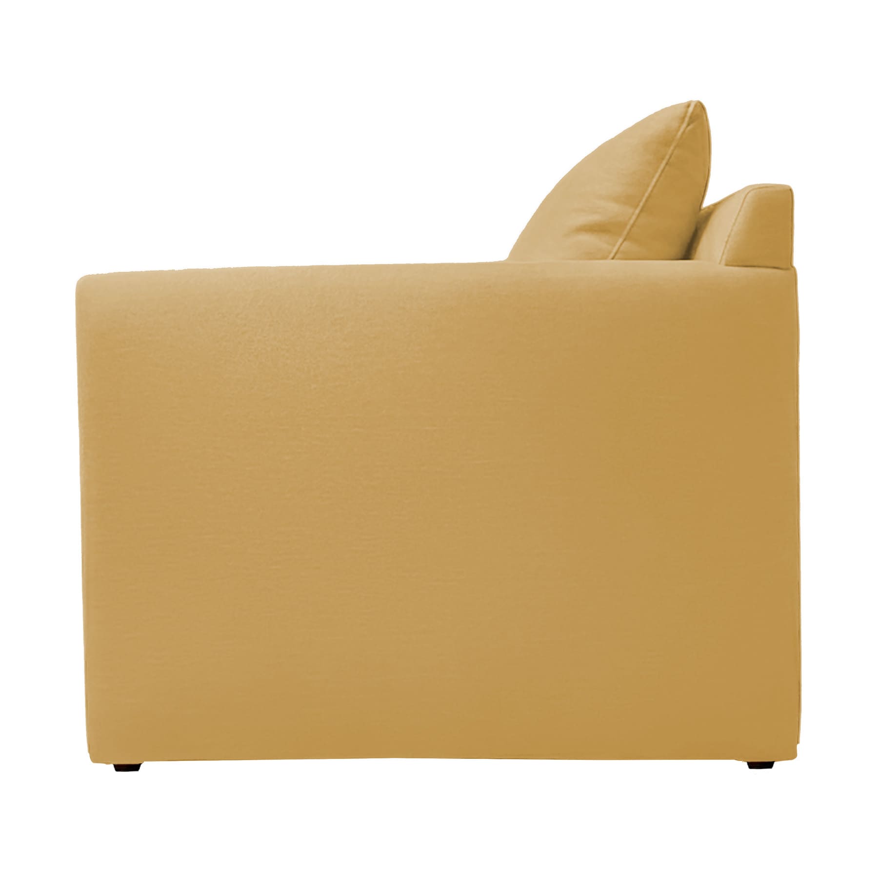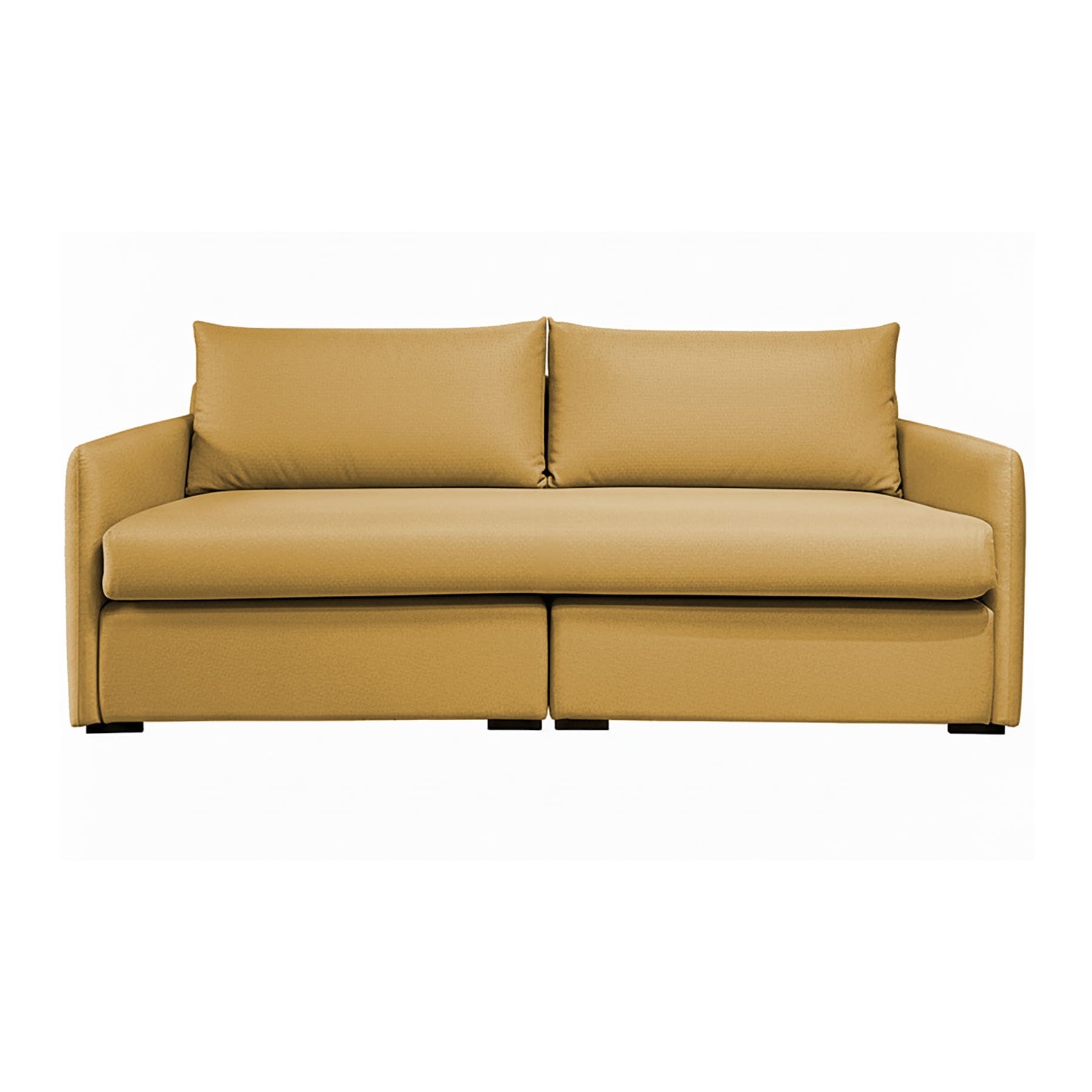 Estrutura em madeira tratada para estofaria. Estrutura interna do assento em percintas e molas bonnel. Almofada de assento em espuma viscoelástica, espuma D26 hipersoft e fibra manta. Almofadas de encosto em fibra pluma sintética. Almofadas complementares em fibra manta sem capa. *Estrutura entregue bipartida. Nossa entrega não inclui montagem, subida por escadas ou içamento. Verifique as medidas de elevadores e portas para possibilitar a entrega.