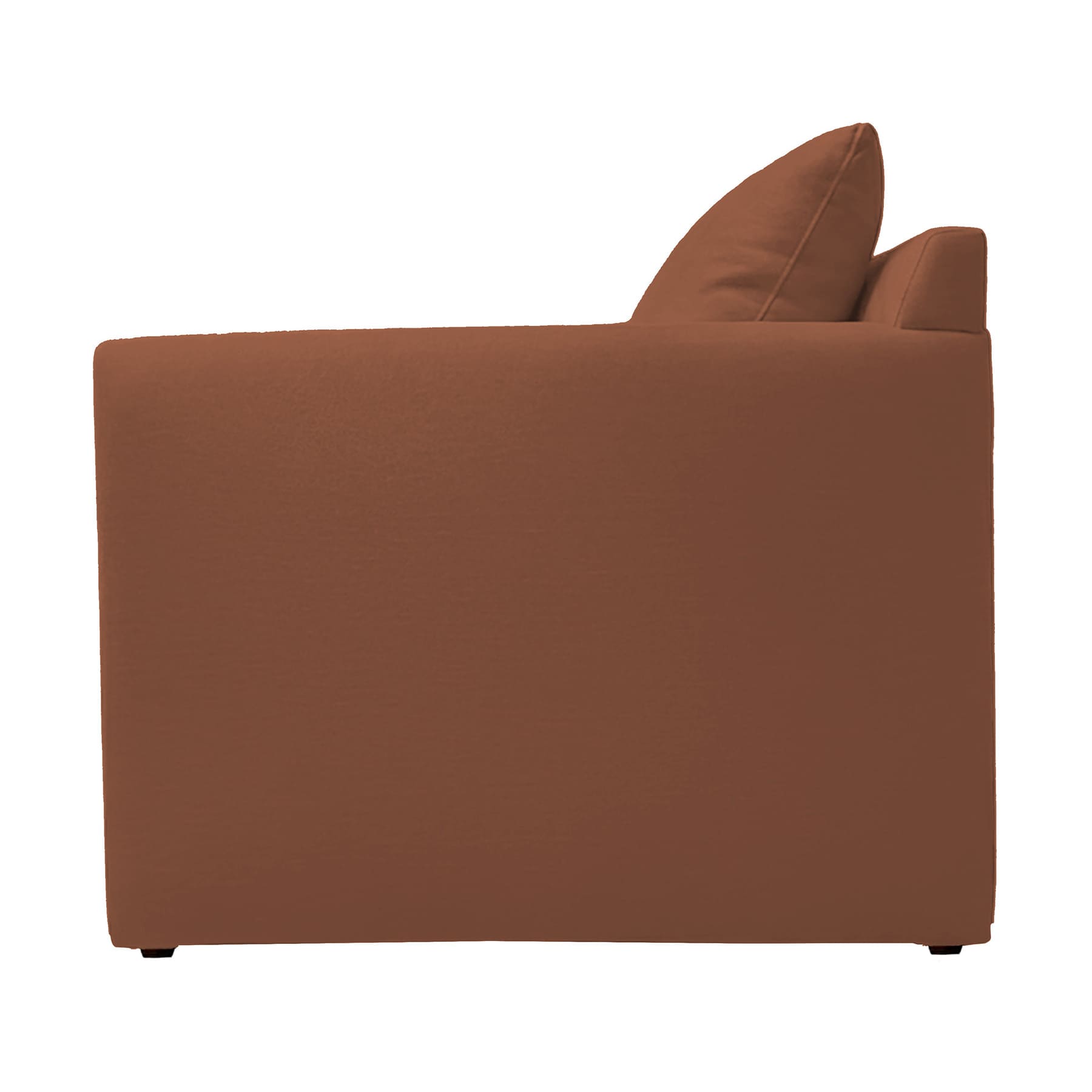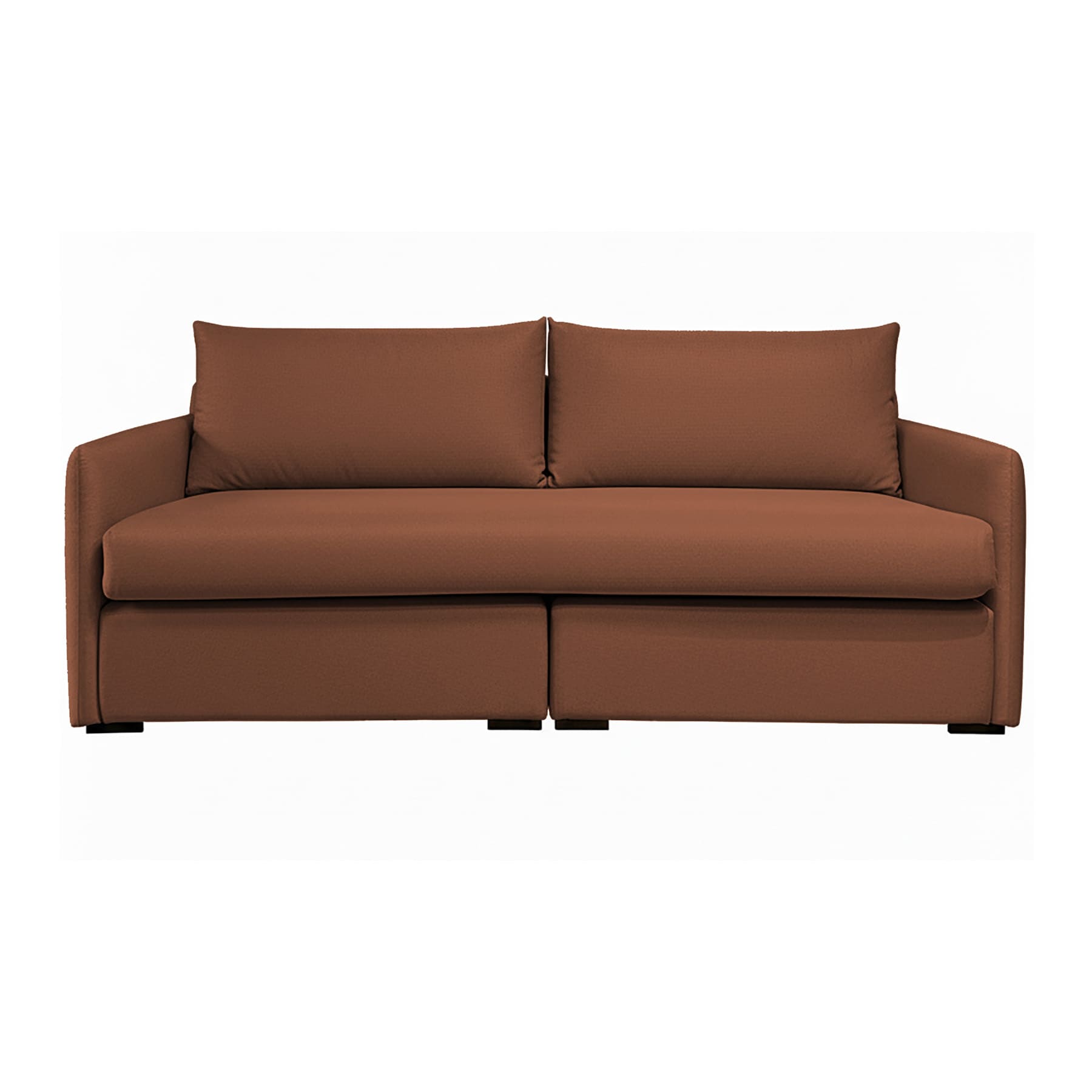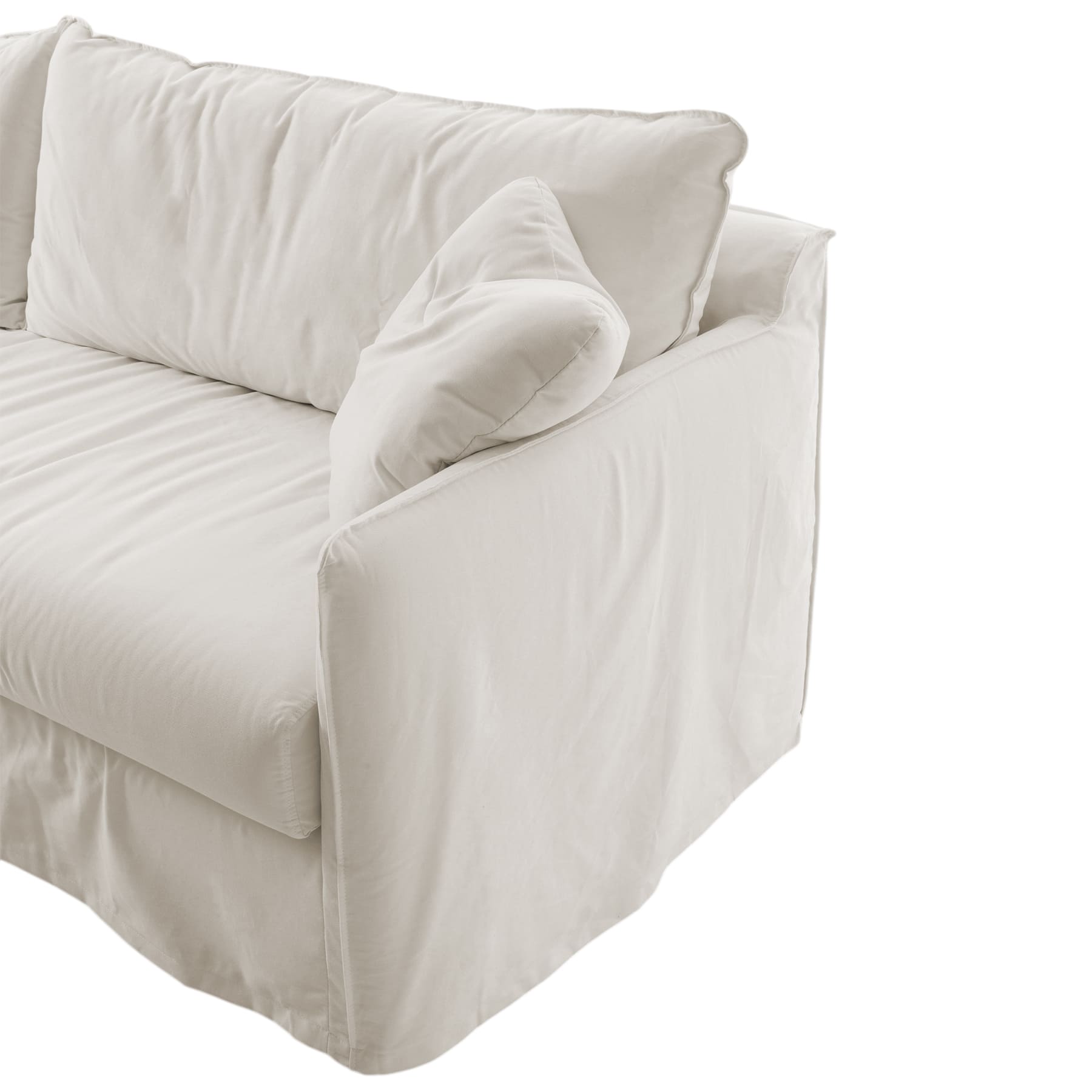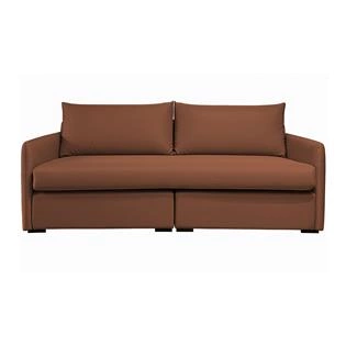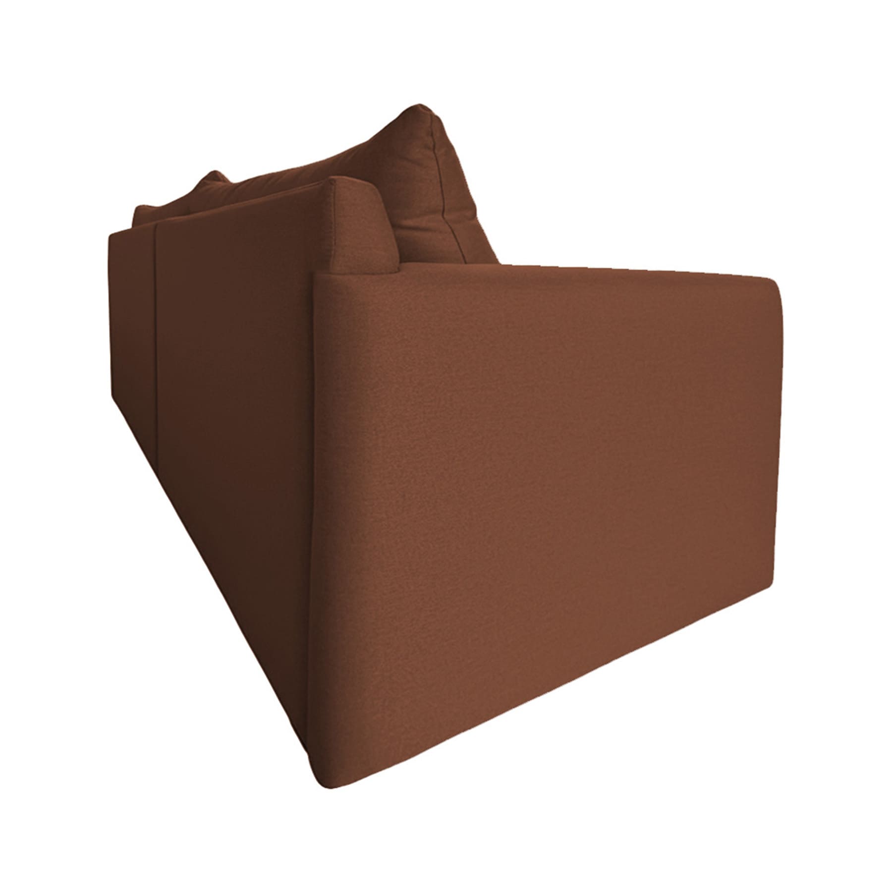 Estrutura em madeira tratada para estofaria. Estrutura interna do assento em percintas e molas bonnel. Almofada de assento em espuma viscoelástica, espuma D26 hipersoft e fibra manta. Almofadas de encosto em fibra pluma sintética. Almofadas complementares em fibra manta sem capa. *Estrutura entregue bipartida. Nossa entrega não inclui montagem, subida por escadas ou içamento. Verifique as medidas de elevadores e portas para possibilitar a entrega.