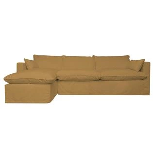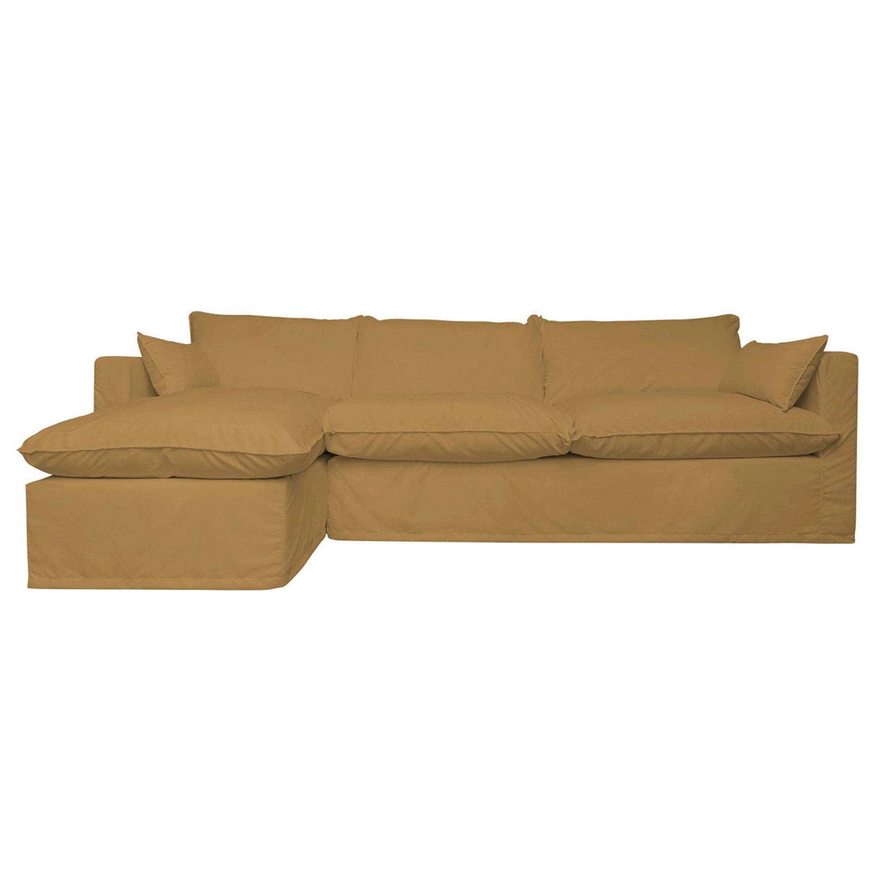 sofa com chaise e capa em pluma sintética arco 3 lugares