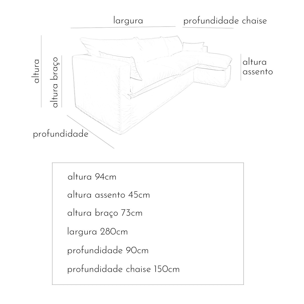 sofa com chaise e capa em pluma sintética arco 4 lugares