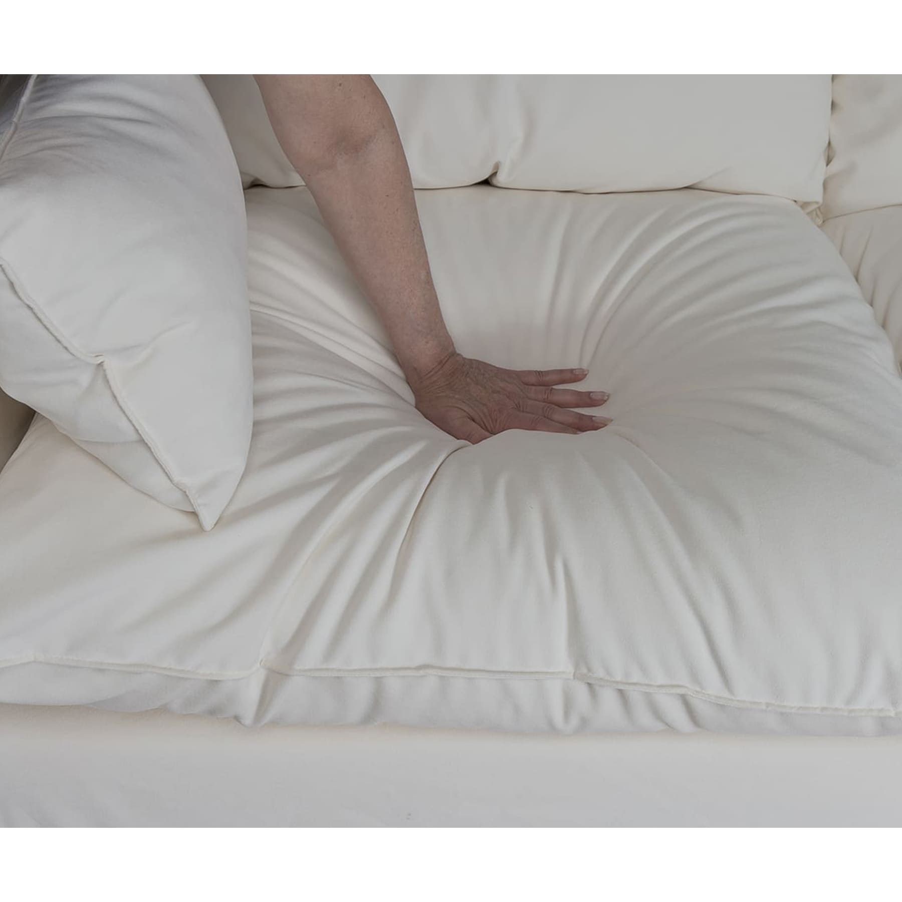 Estrutura em madeira especial para estofaria de alta resistência. Estrutura de assento e encosto com molas NoSag de alta qualidade (que garante sustentação perfeita). Estofado em espuma D33 hipersoft e tecido lona em 100% algodão. Almofadas de encosto, assento e laterais com recheio em plumas sintéticas super macias, com tecido em 100% algodão costurado em colmeia (garante a manutenção das plumas no mesmo lugar). Capa em sarja peletizada 100 % poliéster com certificação OEKO TEX standart 100 (tecido produzido sem substâncias que podem ser nocivas a saúde) que não encolhe. Pés em madeira maciça. *Recomendada lavagem profissional da capa. **Produto entregue bipartido e com pés desmontados. Nível de dificuldade de montagem: média. Necessária montagem profissional.