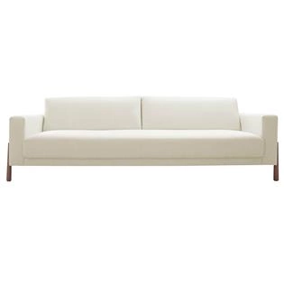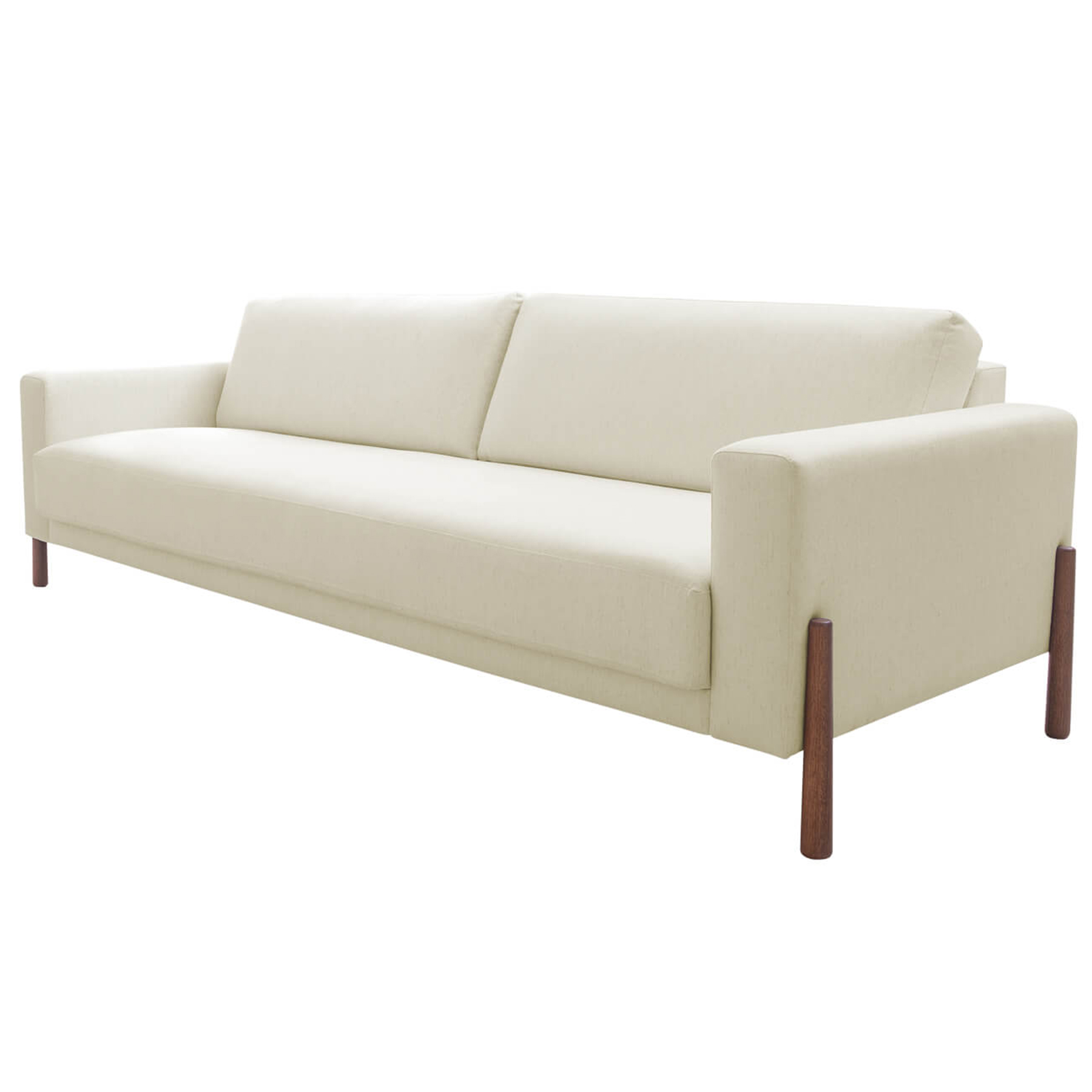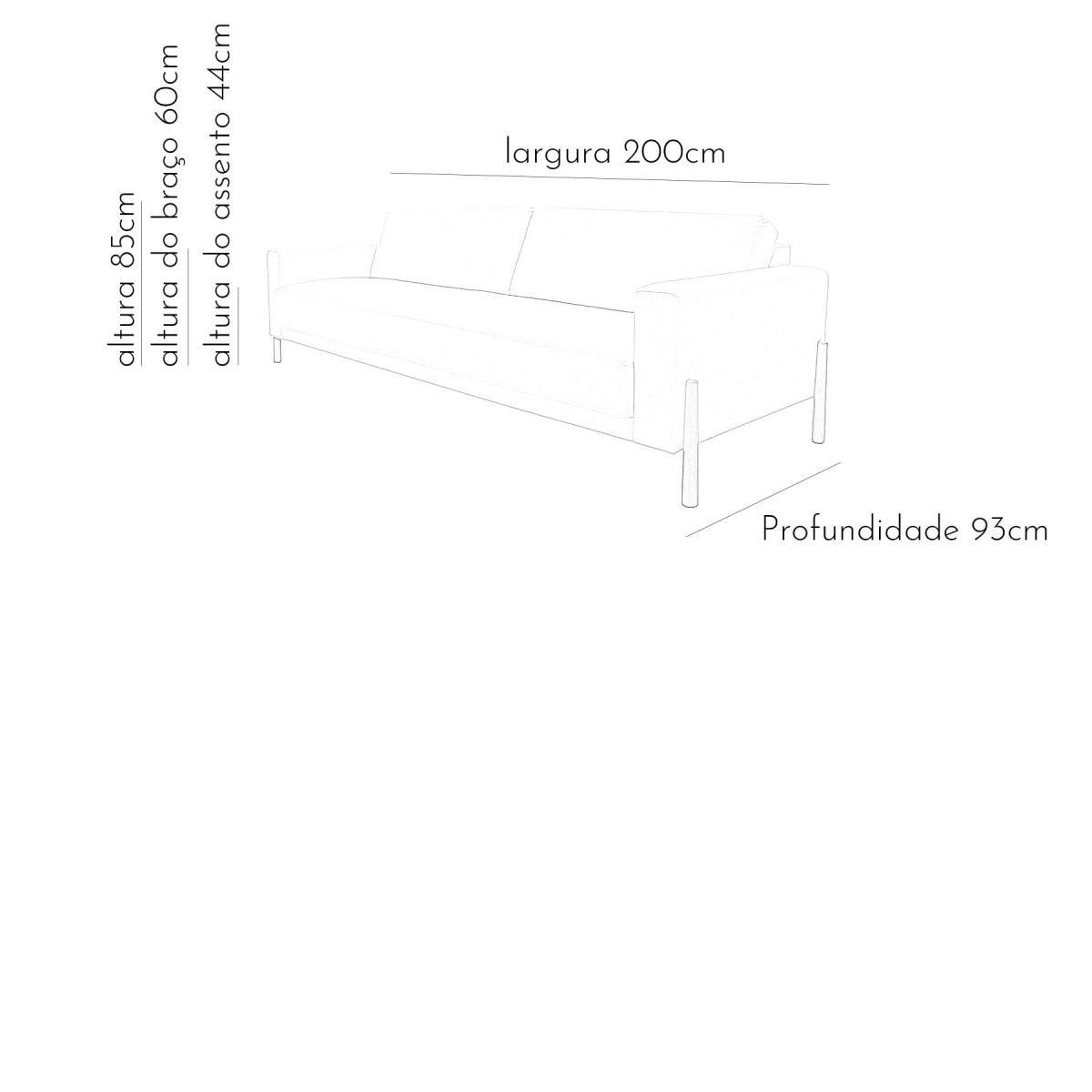 Estrutura interna em madeira maciça com tratamento especial para estofaria. Pés em madeira maciça eucalipto de origem de reflorestamento. Assento com almofada fixa, estrutura interna em molas bonel e percintas italiana, estofado em espuma D33 hipersoft, manta acrílica e tecido. Encosto com almofadas soltas em espuma D23 hipersoft. **ATENÇÃO: Este produto é entregue semi montado (pés desmontados). Verifique as medidas das portas e elevadores para entrega. Pode ser entregue com os braços desmontados, para isso entre em contato através de qualquer canal de atendimento. Nossa entrega não inclui montagem, subida por escadas a partir de dois andares ou içamento.