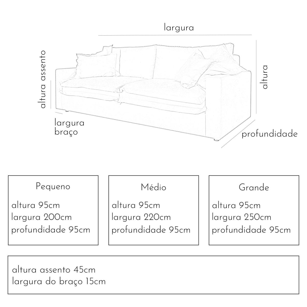 Estrutura em madeira especial para estofaria de alta resistência estofada em espuma D33 hipersoft. Estrutura de assento e encosto com molas NoSag de alta qualidade. Almofadas de assento com camada de espuma D33 hipersoft de 9cm e plumas sintéticas. Almofadas de encosto em pluma sintética (mais de 5 quilos de enchimento por almofada) costurado em colmeia (garante a manutenção das plumas no mesmo lugar). Almofadas decorativas em pluma sintética com forro interno. Estofado em sarja peletizada 100% poliéster com certificação OEKO TEX standart 100 (tecido produzido sem substâncias que podem ser nocivas à saúde). Pés em madeira maciça. *ATENÇÃO: nas medidas P e M o sofá é entregue montado, mas pode ser entregue com os braços desmontados. A versão G é entregue bipartida. Verifique as medidas de porta e elevadores para possibilitar a entrega. Nosso frete não inclui subida por escadas, içamento e/ou montagem.
