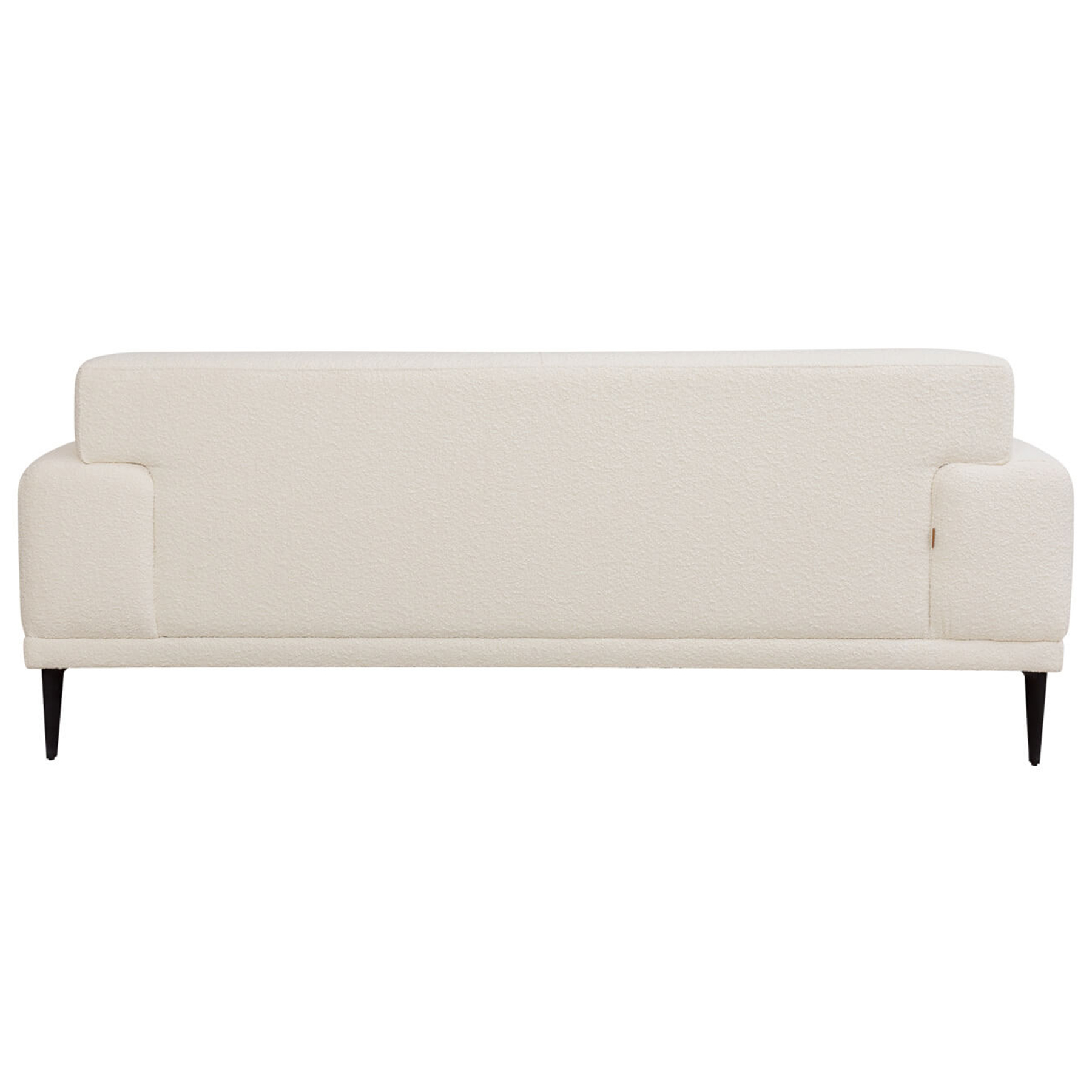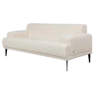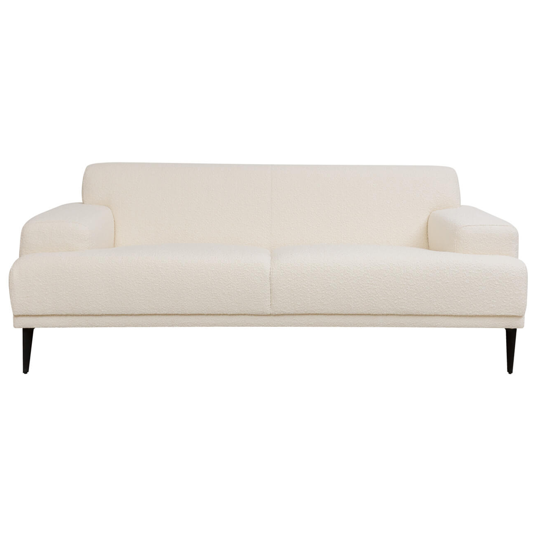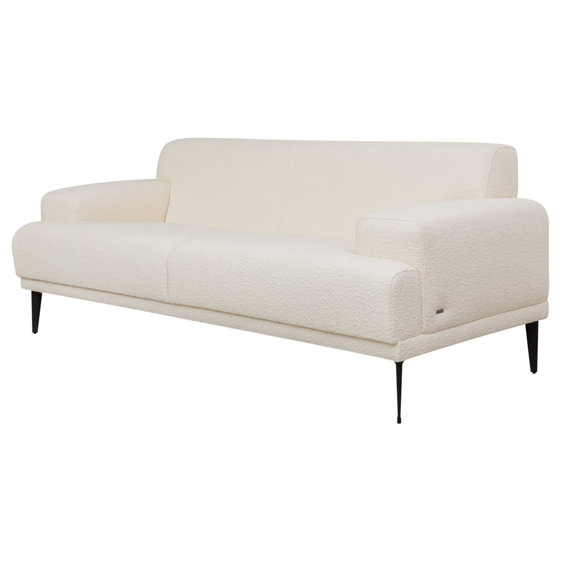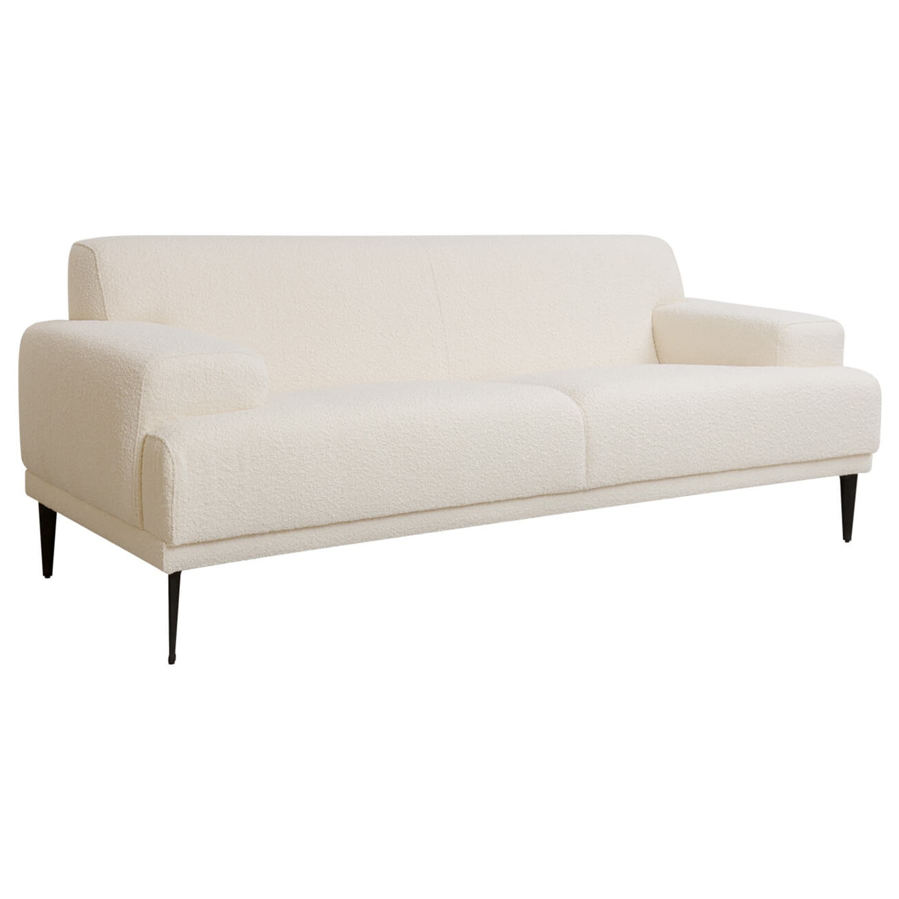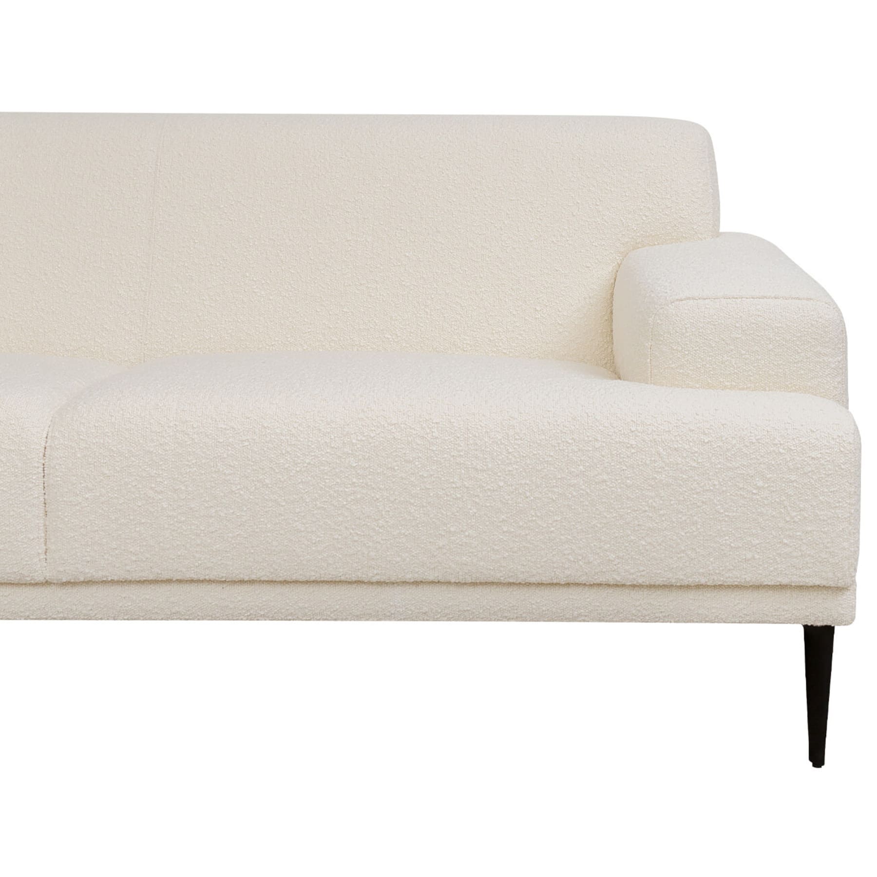 Estrutura produzida em madeira maciça tratada para estofaria. Assento fixo com estrutura em percintas italianas, estofado com espuma D33 hipersoft e tecido bouclê. Encosto fixo em espuma D26 soft com hipersoft. Pés em alumínio fundido com pintura epóxi preto. *ATENÇÃO: este produto é entregue semi montado (com os pés desmontados). Montagem fácil. Não necessita montagem profissional. Nossa entrega não inclui montagem, subidas por escadas a partir de dois andares ou içamento. Verifique se as medidas de elevadores e portas para entrega.