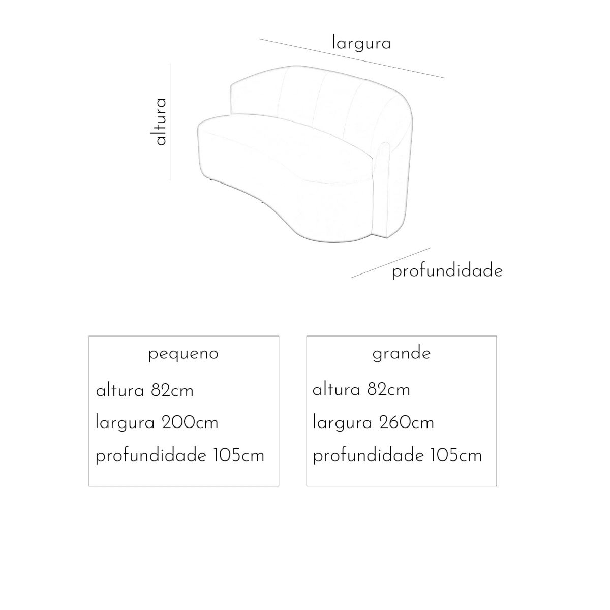 Estrutura produzida em madeira maciça tratada para estofaria. Assento e encosto fixos com estrutura em percintas, molas de sustenção, estofado com espuma D28 hipersoft, manta de fibra e tecido veludo fosco composição 100% poliéster. *ATENÇÃO: este produto é entregue montado e não pode ser desmontado. Nossa entrega não inclui montagem, subidas por escadas a partir de dois andares ou içamento. Verifique as medidas de elevadores e portas para entrega.