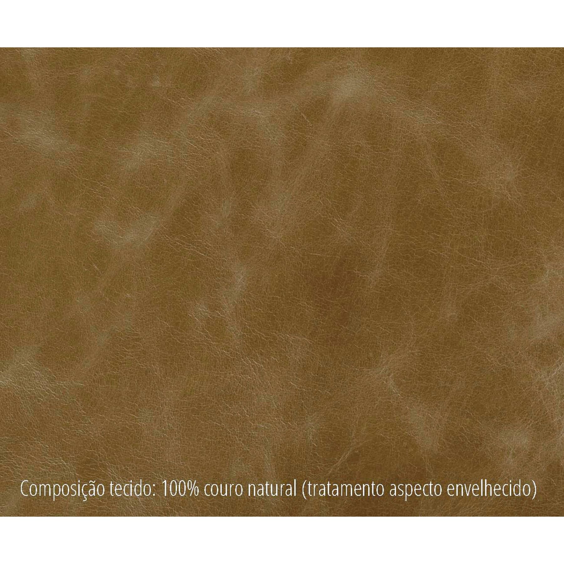Estrutura em madeira maciça. Assento em molas com almofadas fixas em espuma. Encosto com estrutura em percintas com almofadas soltas em fibra siliconada. Revestido em couro natural com acabamento especial desgastado. Pés em madeira maciça. *Produto entregue montado. Verifique as medidas da peça e de elevadores, escadas e portas. O frete não inclui içamento, subida por escadas a partir do segundo andar e/ou montagem e desmontagem.