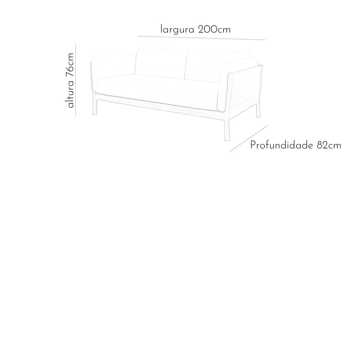 Estrutura em madeira maciça taeda de origem de reflorestamento. Almofadas soltas em espuma D28, manta acrílica e tecido linho 74% algodão 26% linho. *Produto entregue montado. Verifique as medidas da peça e de seus elevadores, escadas e portas. Nosso frete não inclui içamento e/ou subida por escadas.