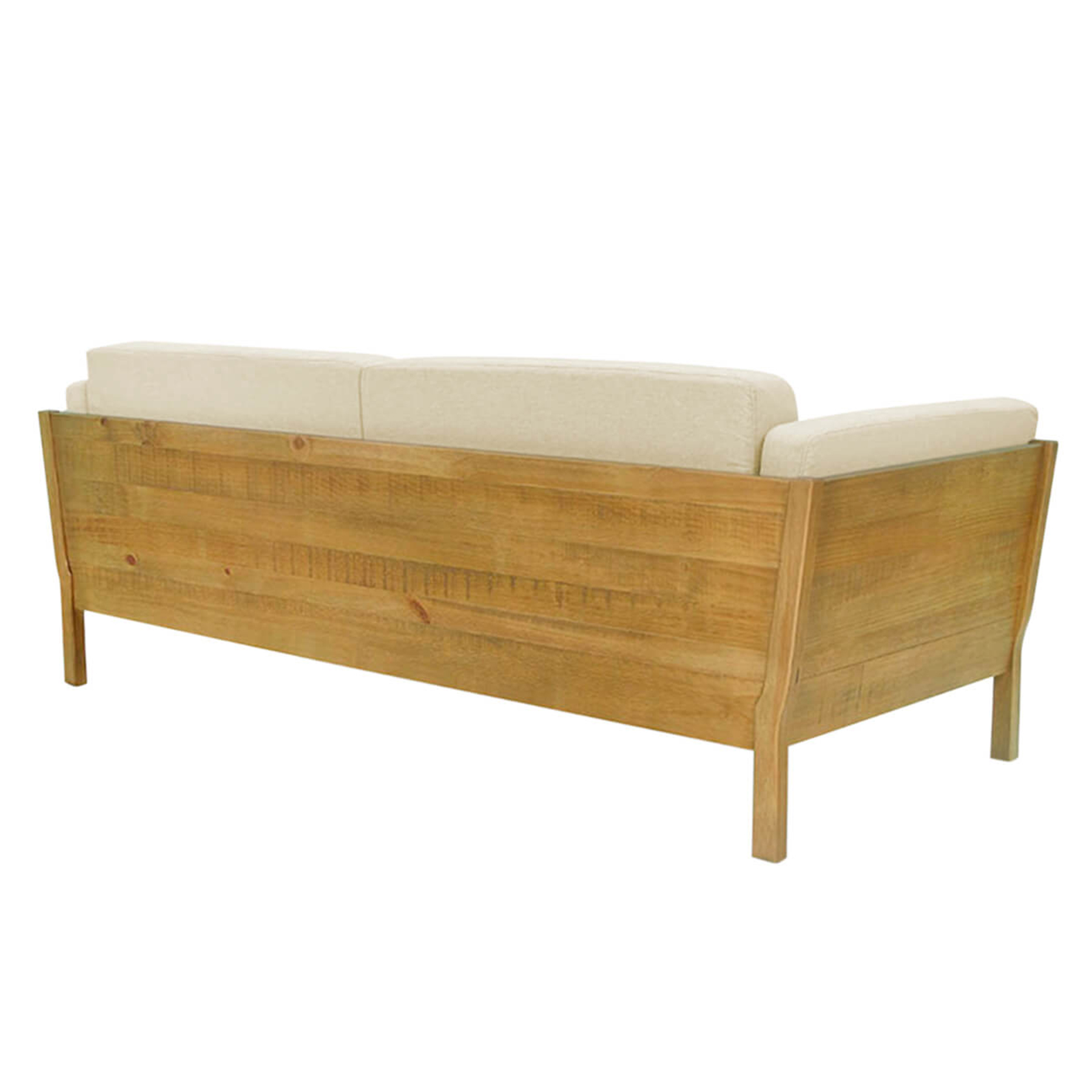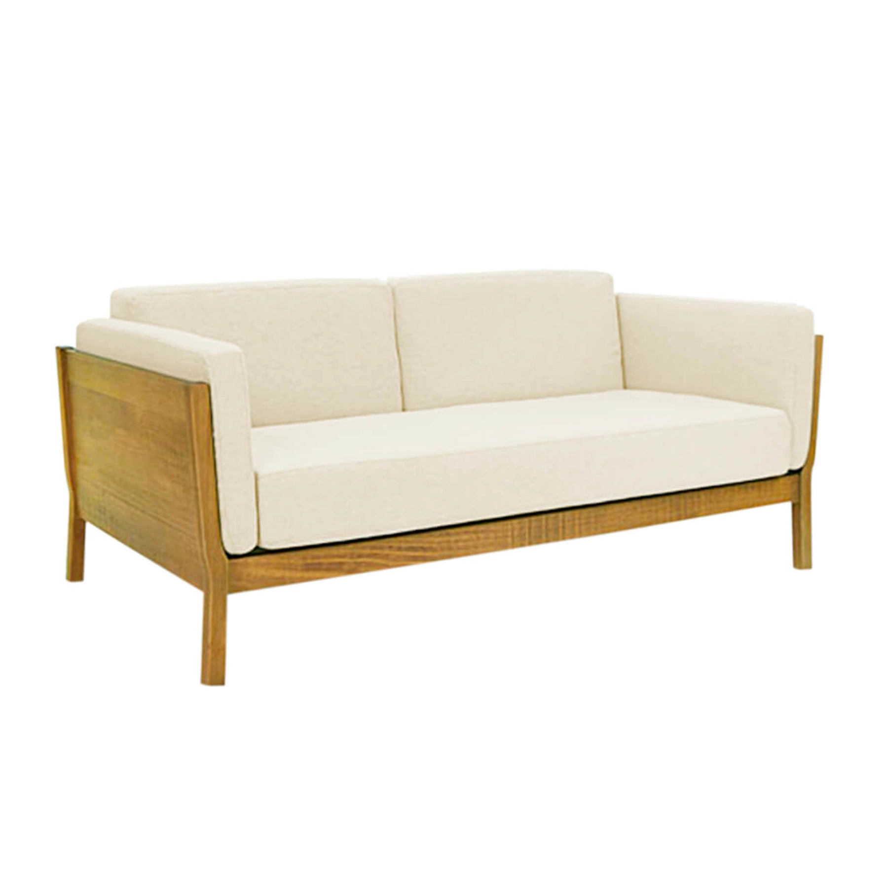 A estrutura externa em madeira maciça torna o sofá contemporâneo. Ao mesmo tempo, a naturalidade da madeira remete ao campo. É a peça perfeita para ambientes descontraídos e modernos