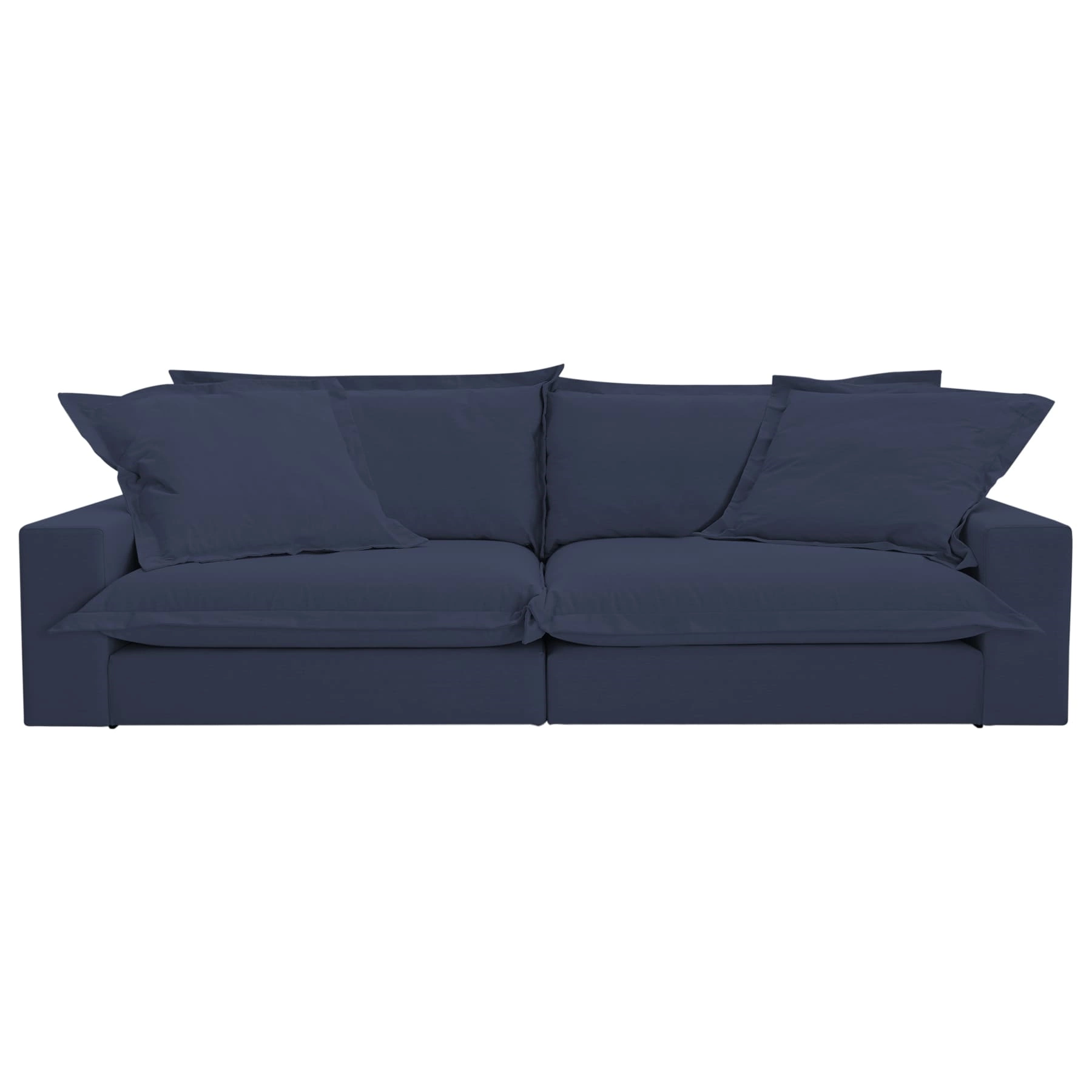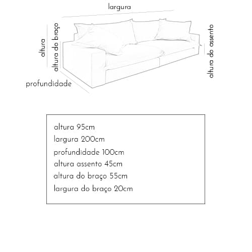 Muito conforto com almofadas soltas e o detalhe lindo da costura com borda de 4cm. Um sofá perfeito para living e sala de TV, com desenho clássico e aquela sensação de aconchego.