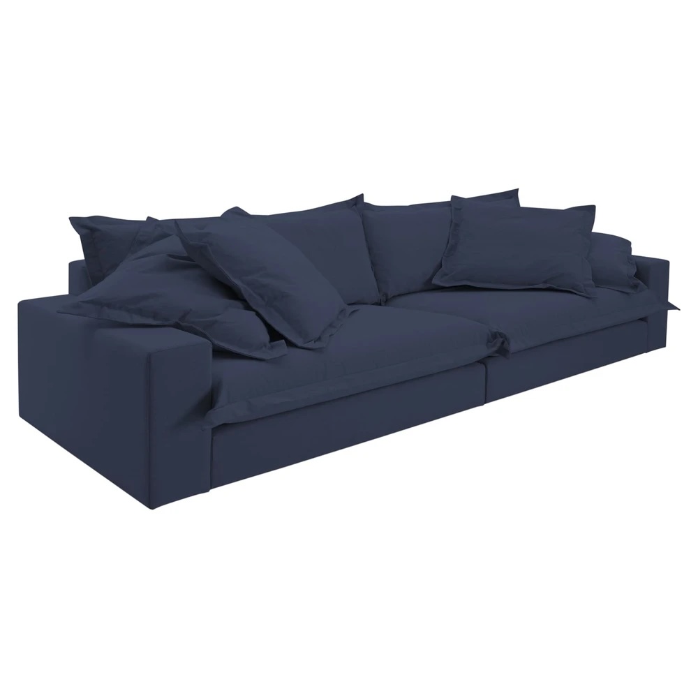 Muito conforto com almofadas soltas e o detalhe lindo da costura com borda de 4cm. Um sofá perfeito para living e sala de TV, com desenho clássico e aquela sensação de aconchego.