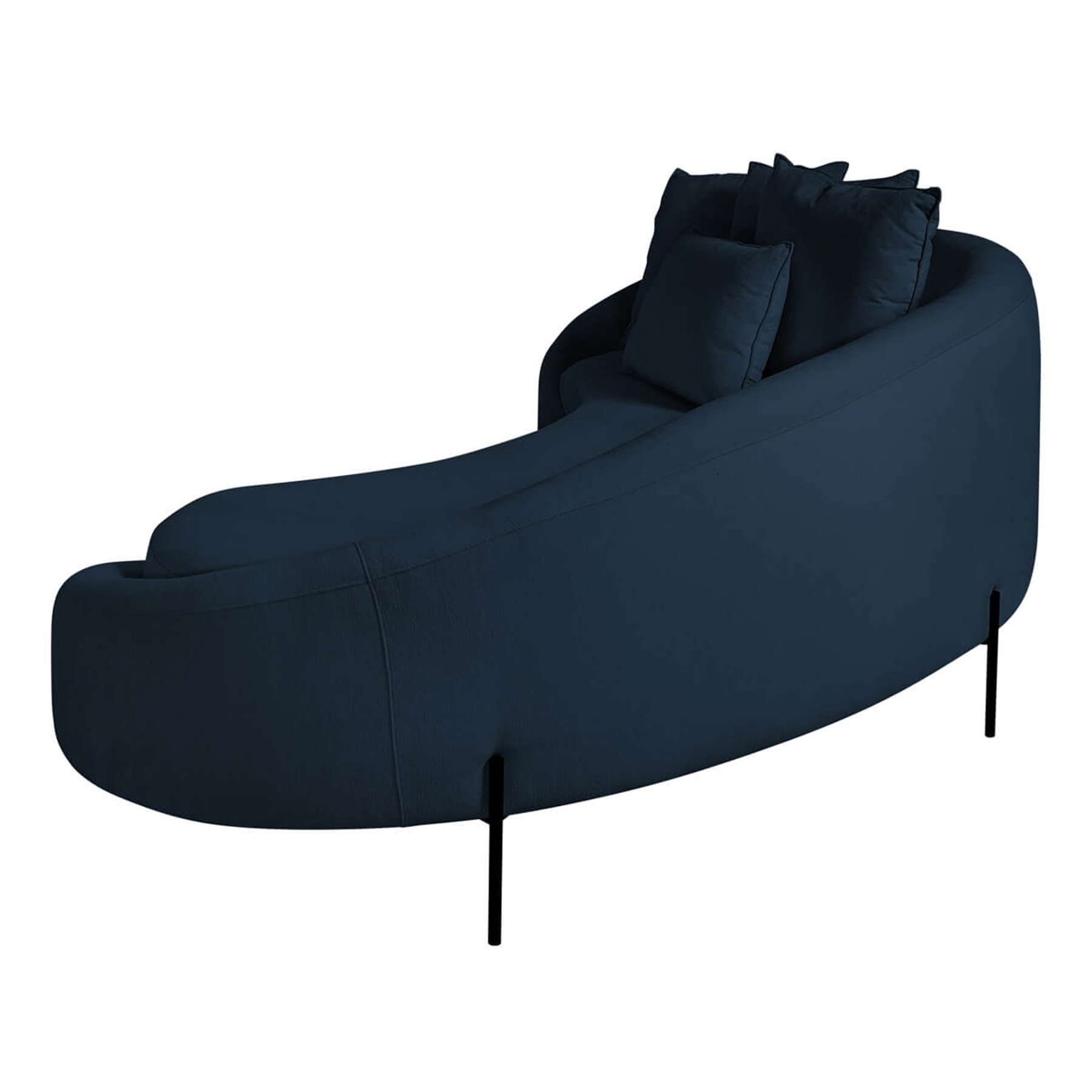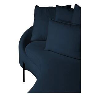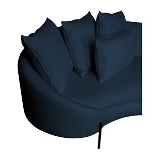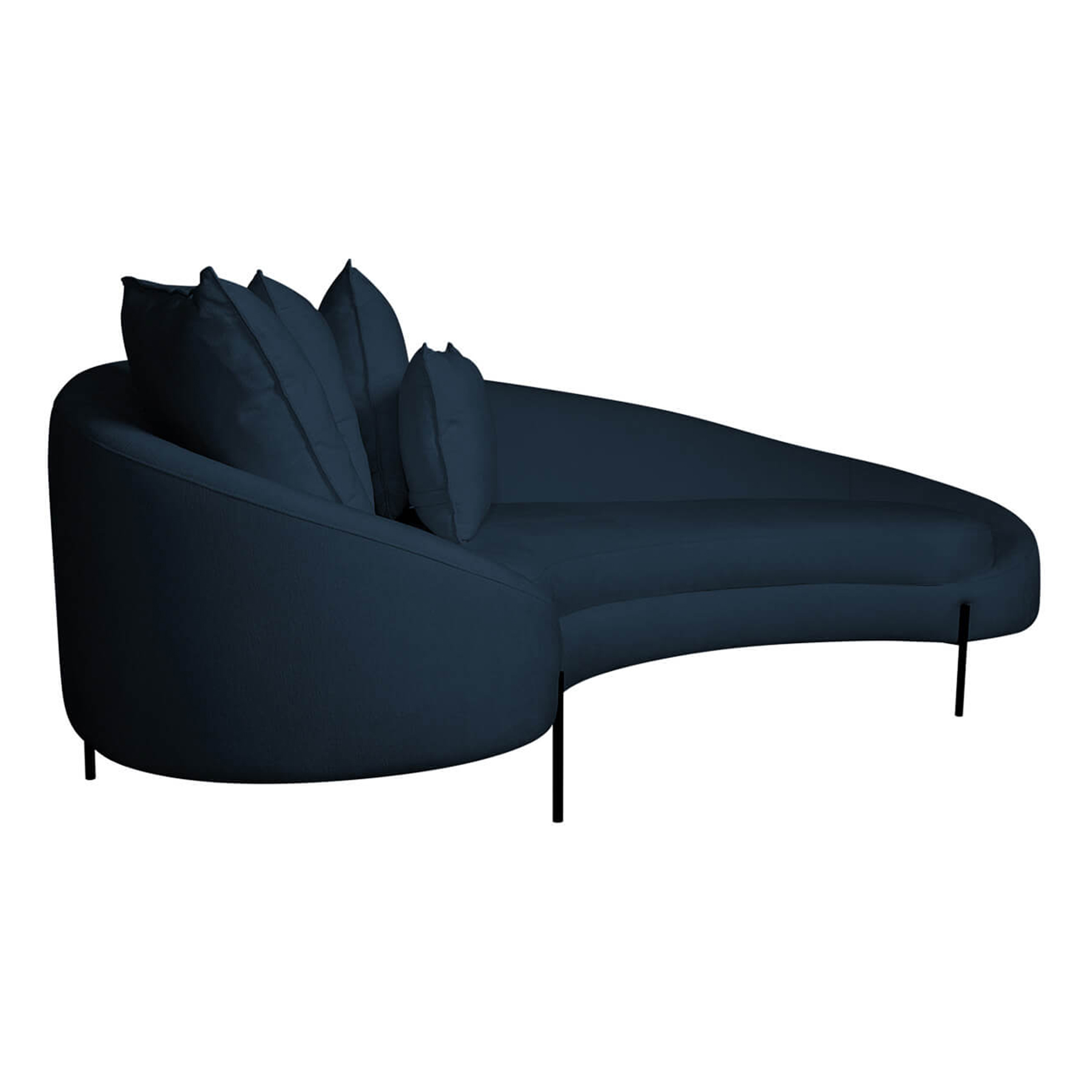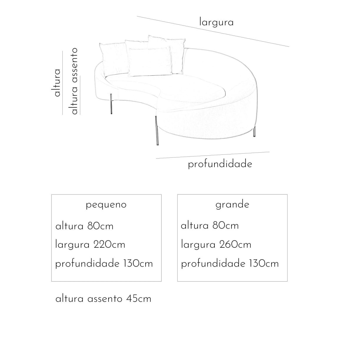 Estrutura em madeira maciça. Estrutura de assento e encosto em percintas elásticas de alta resistência. Base em aço carbono com pintura epóxi. Almofada de assento solta produzida em espuma D26 com cobertura hipersoft. Almofadas de encosto soltas em fibra siliconada. Estofado em tecido tipo linho sintético ou misto (composição de acordo com a cor selecionada). Acompanham o produto 4 almofadas soltas. *ATENÇÃO: este produto é entregue semi-montado (com os pés desmontados) e não pode ser desmontado na estrutura. Nossa entrega não inclui montagem, subidas por escadas a partir de dois andares ou içamento. Verifique se as medidas de elevadores e portas possibilitam entrega.