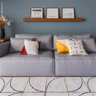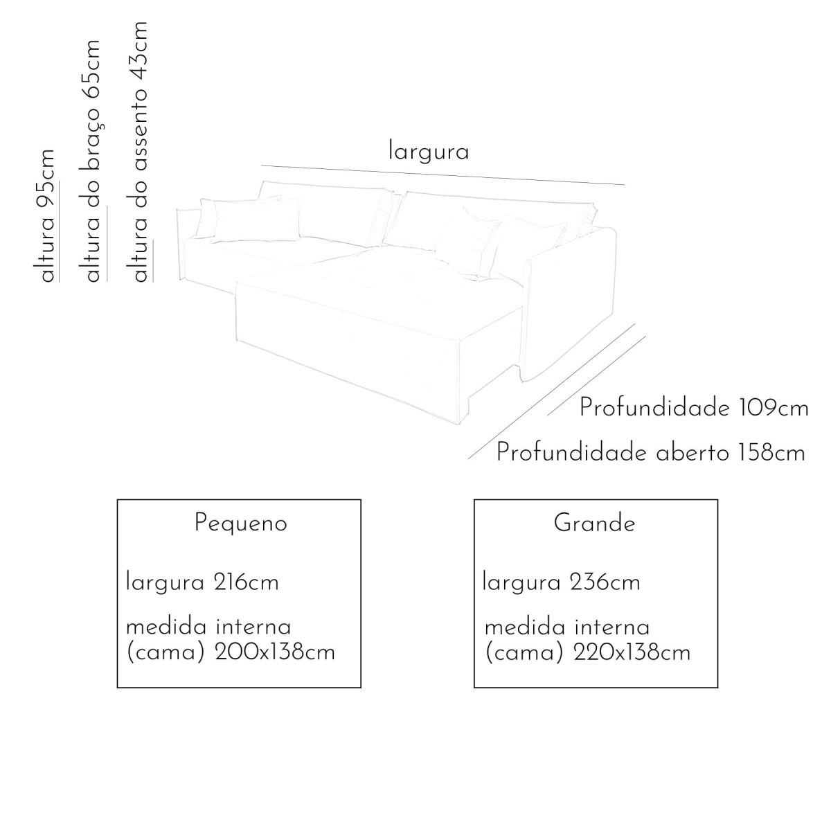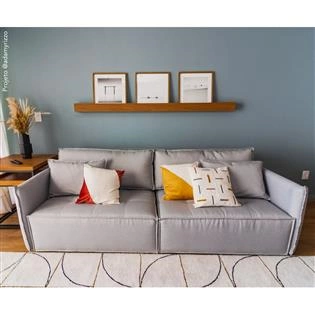 Assento em molas bonnel e percintas italianas. Estofado com espuma D33 hipersoft e tecido. Almofadas de encosto soltas em fibra siliconada. *Produto entregue bipartido. Nível de dificuldade de montagem: fácil. Não necessita montagem profissional.