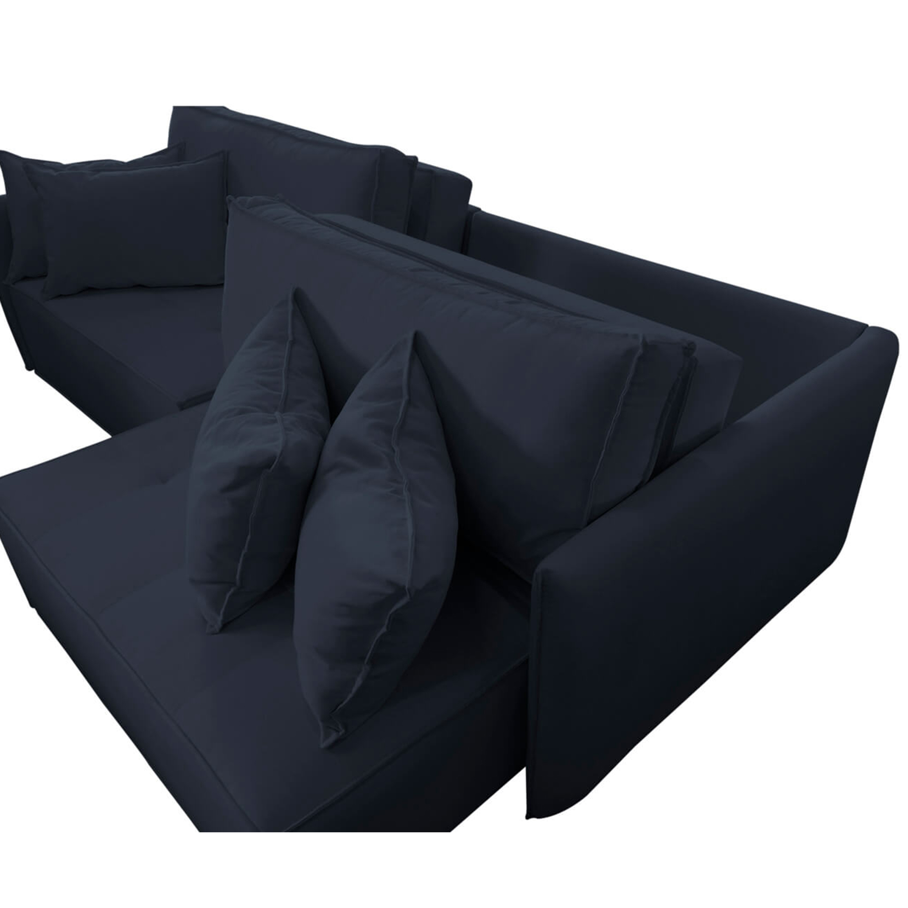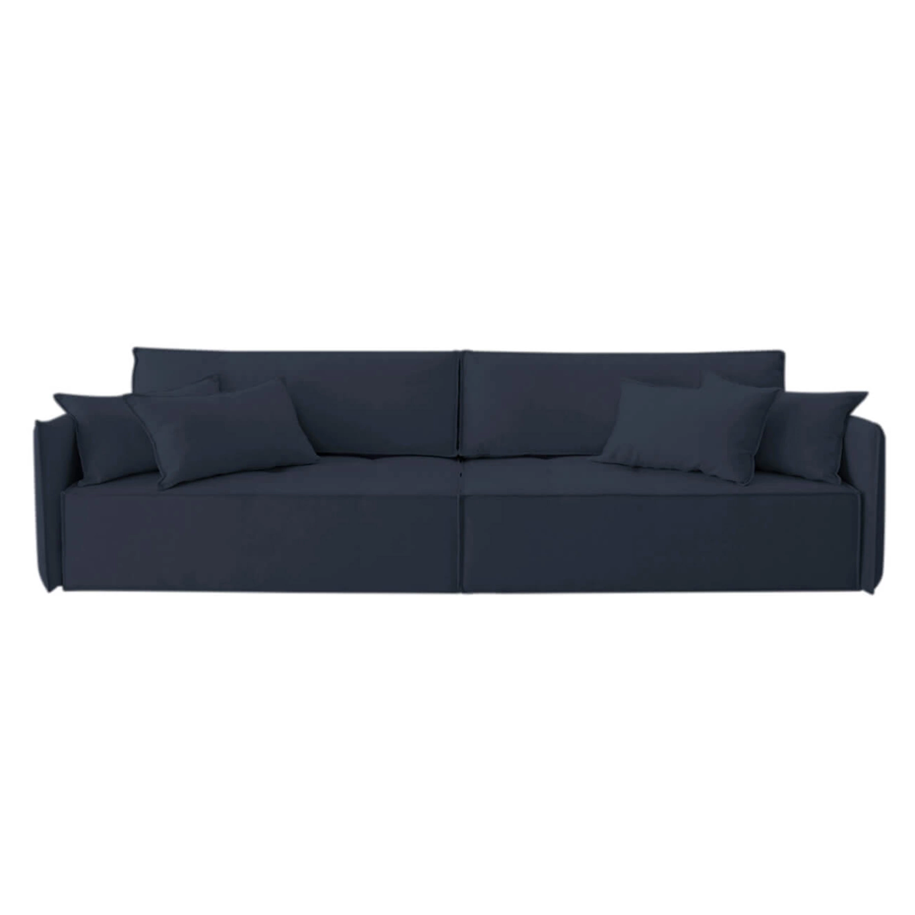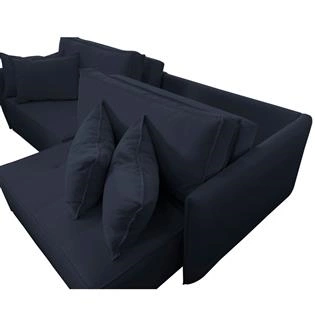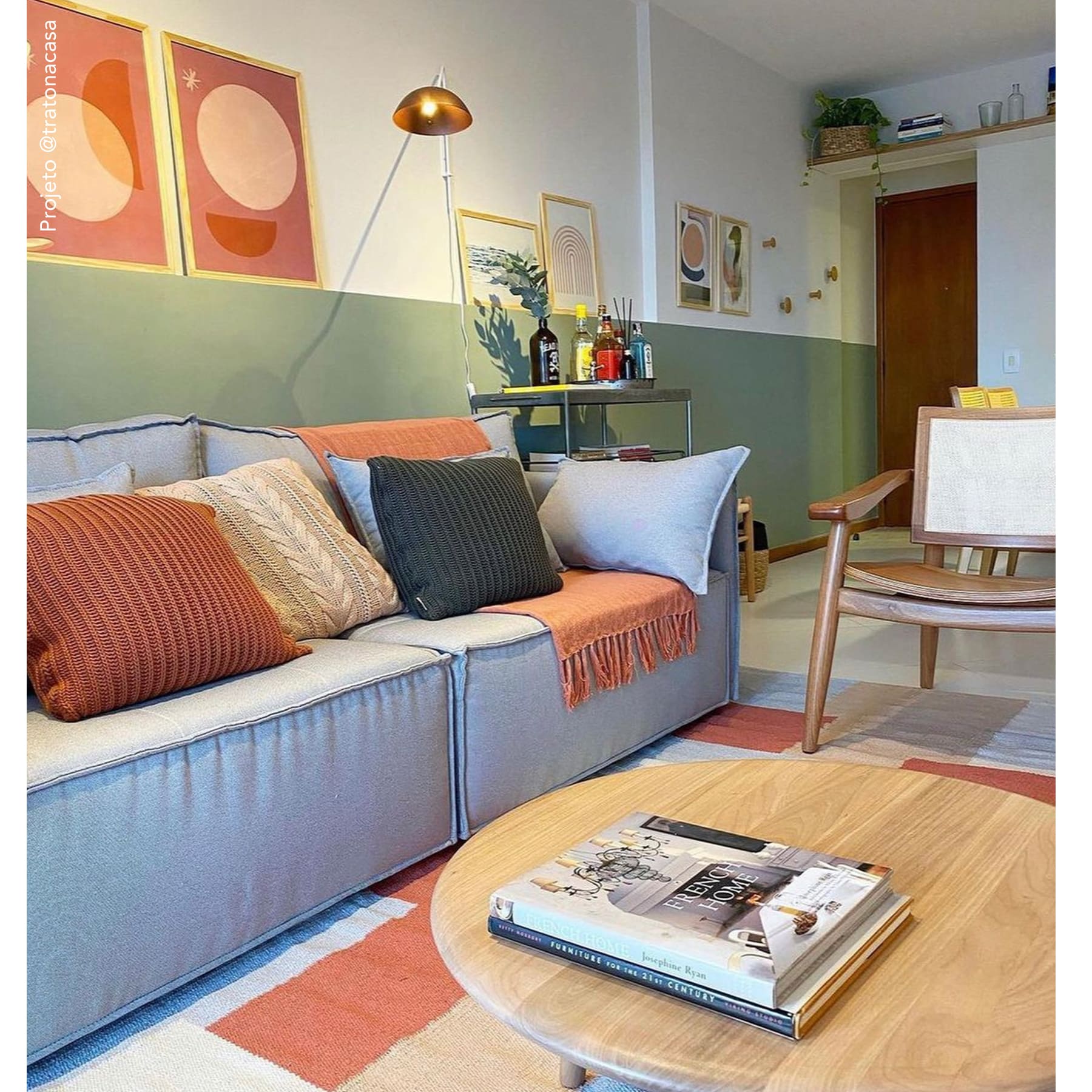 Assento em molas bonnel e percintas italianas. Estofado com espuma D33 hipersoft e tecido. Almofadas de encosto soltas em fibra siliconada. *Produto entregue bipartido. Nível de dificuldade de montagem: fácil. Não necessita montagem profissional.