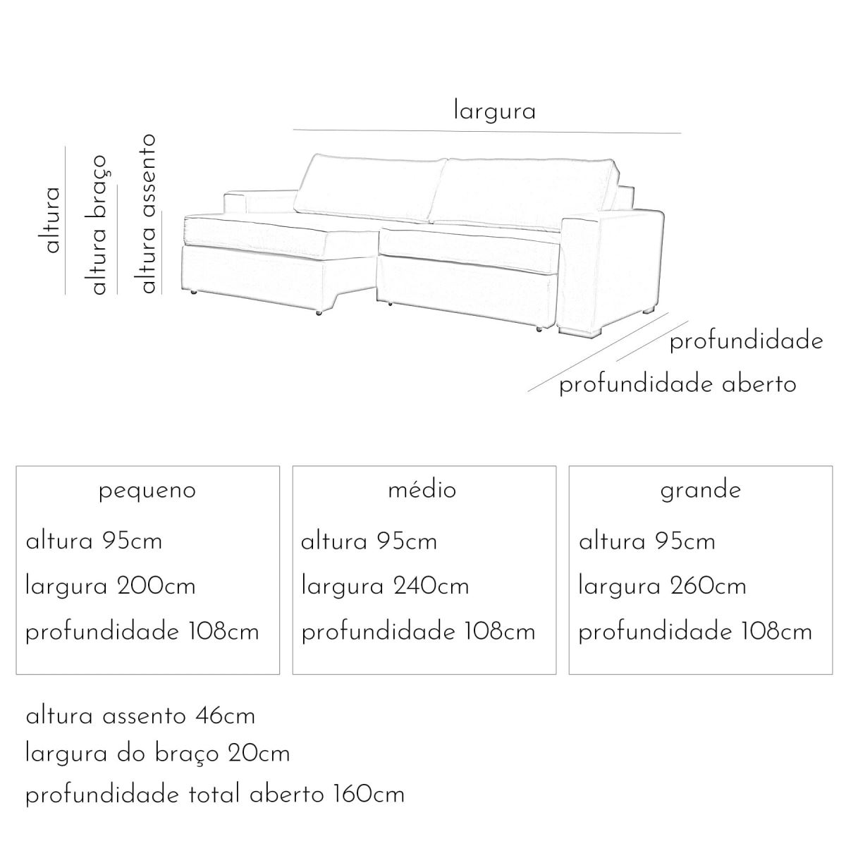 Estrutura em madeira especial para estofaria de alta resistência. Estrutura interna de assento em molas bonnel. Almofada de assento fixa em espuma D30 hipersoft. Almofadas de encosto soltas em fibra siliconada e espuma D26. **Produto entregue bipartido. Nível de dificuldade de montagem: fácil. Não necessita montagem profissional.