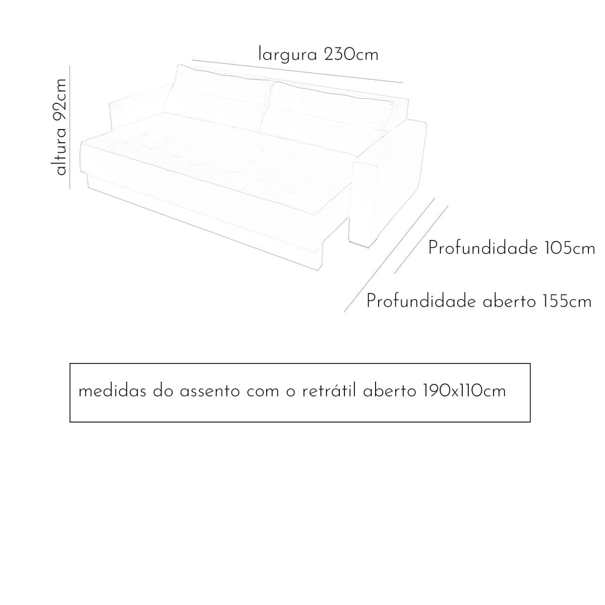 Estrutura em madeira tratada especial para estofaria (processo de secagem especial para evitar danos estruturais). Estrutura interna do assento com 240 molas pocket. Assento produzido em espuma D28, uma camada de espuma hipersoft e manta de fibra siliconada Encosto com percintas italianas e almofadas soltas em espuma e manta de fibra siliconada. *Produto entregue montado. Verifique as medidas da peça e de seus elevadores, escadas e portas. Nosso frete não inclui içamento e/ou subida por escadas a partir de dois lances.