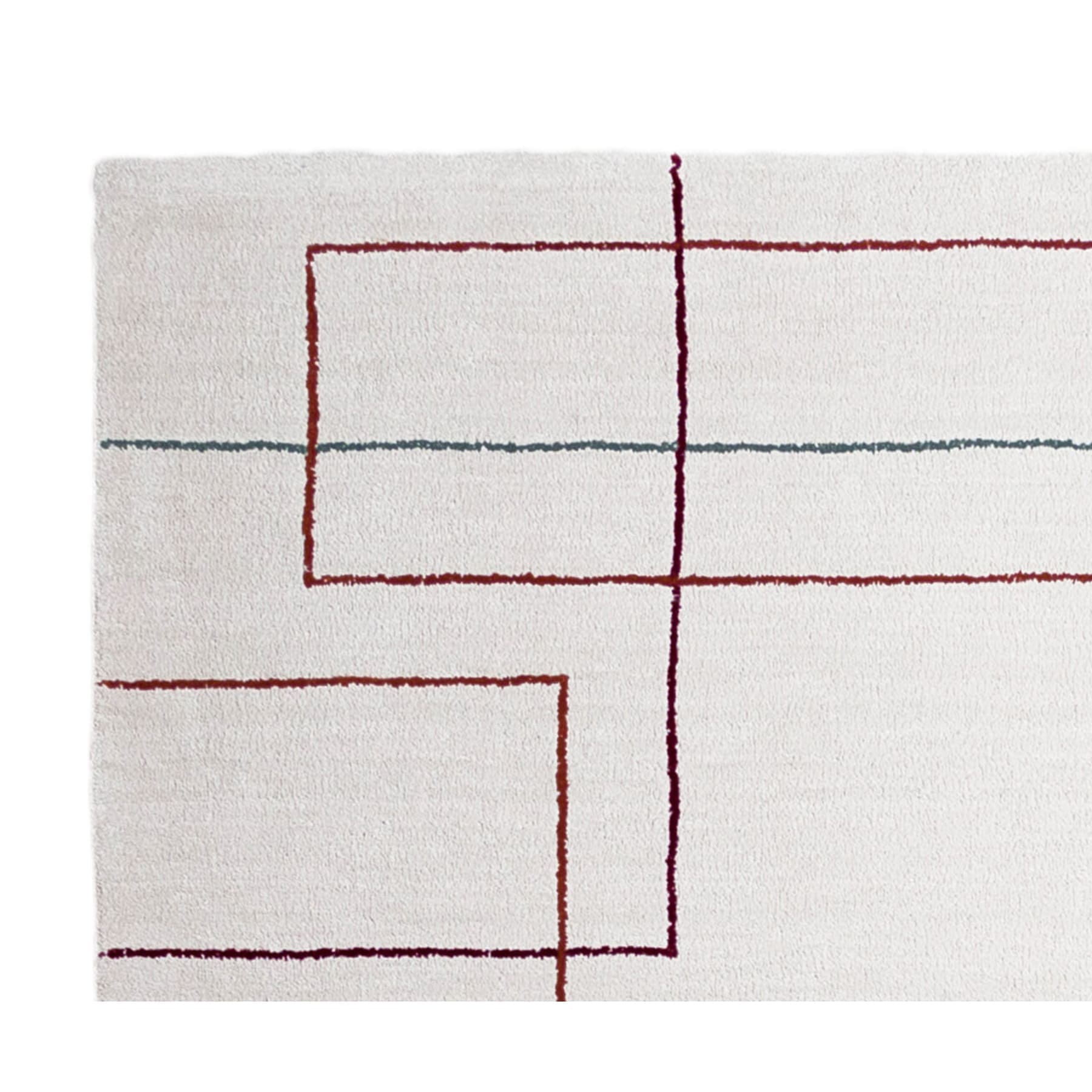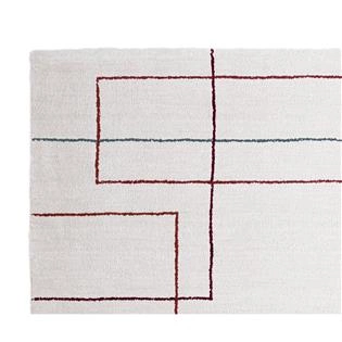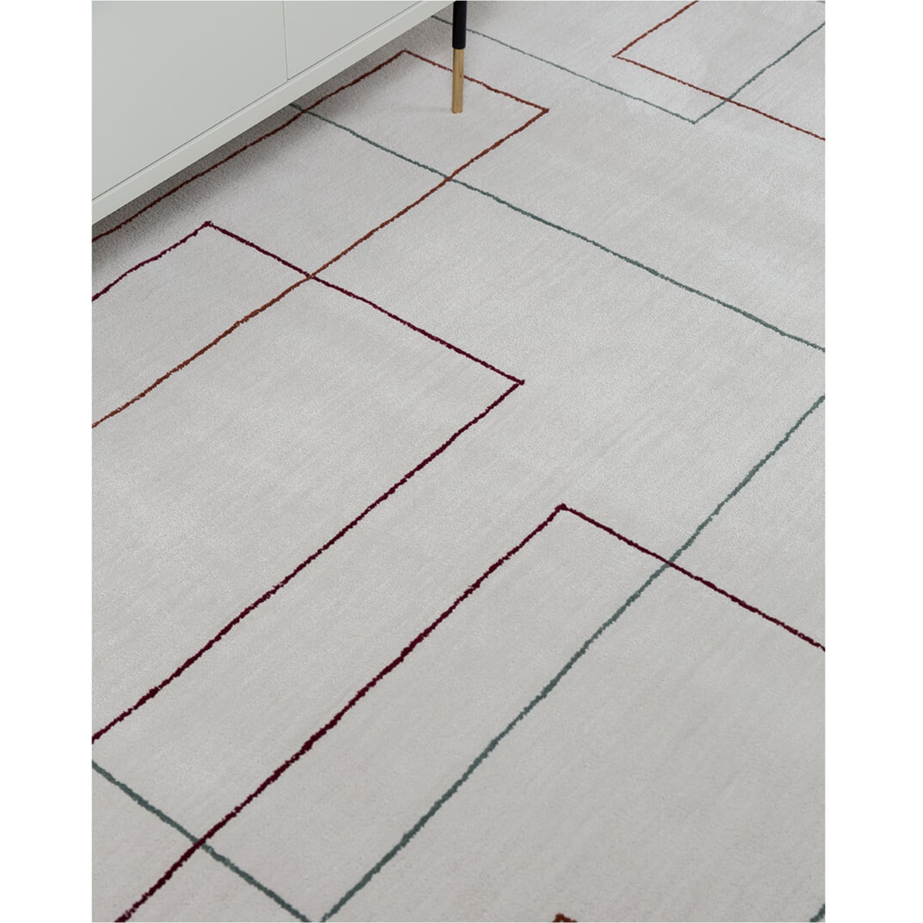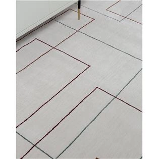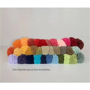 Produzido em fibra poliéster e linhas dos desenhos em nylon. Pelo cortado de 10mm de altura. Acabamento com barra virada.