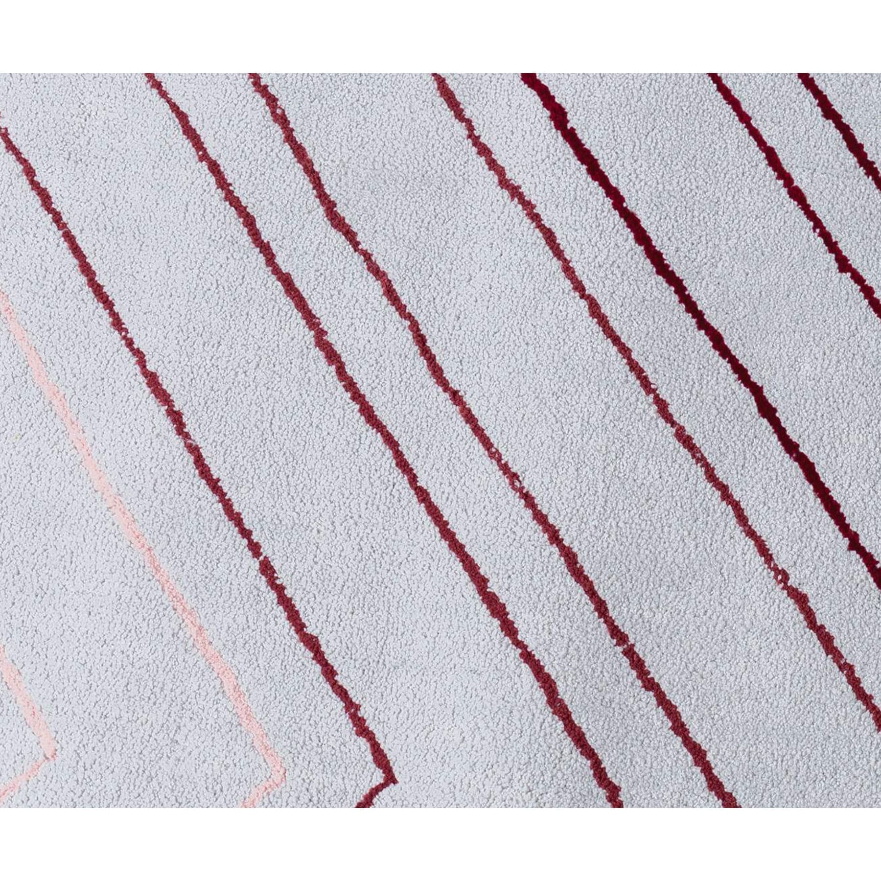 Produzido em fibra poliéster e linhas dos desenhos em nylon. Pelo cortado de 10mm de altura. Acabamento com barra virada.